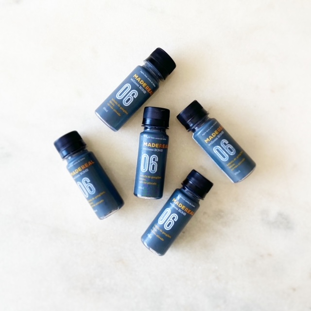 Há também o Bomb 06 (Detox) indicado para quem quer fazer um detox, à base de carvão ativado, limão, gengibre e água de coco. Auxilia na remoção das toxinas e na limpeza do organismo. O kit Bomb 06 pode ser encontrado na loja virtual da MadeReal por R$ 49,50.